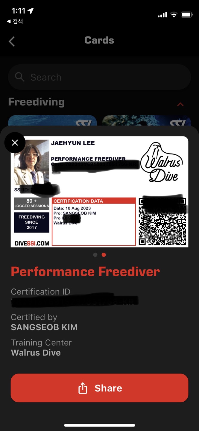 이제 마스터 프리다이버다.