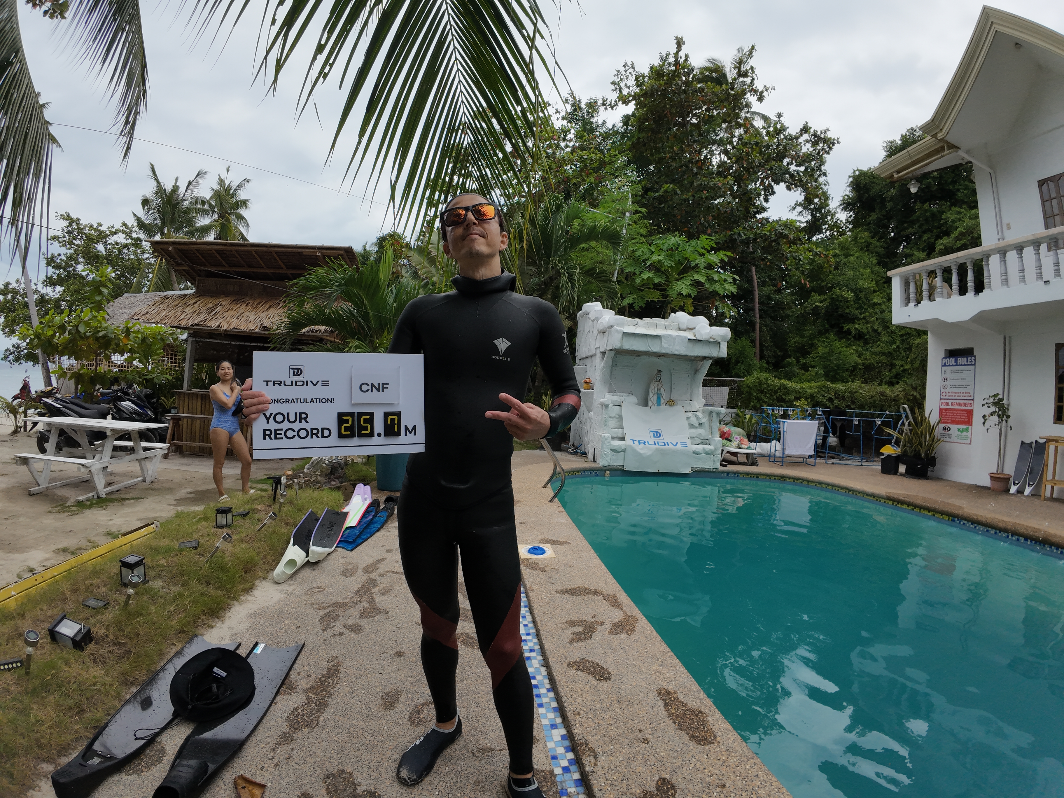 * CNF : 10.8m, 25.7m(PB) - 25m 목표수심. 첫 번째는 이퀄 타이밍을 놓쳐서 얼리턴. 두 번째는 목표대로 PB 달성. CNF는 딥스에서 16m까지만 가봤었기 때문에 과연 25m의 음성부력에서 얼마나 상승이 힘들것인가가 궁금했는데, 생각보다 힘들지 않았음. 바코 강사님에게 지적 받았던 암스트로크의 효율성과 윕킥도 신경쓰면서 여유있게 수행함.